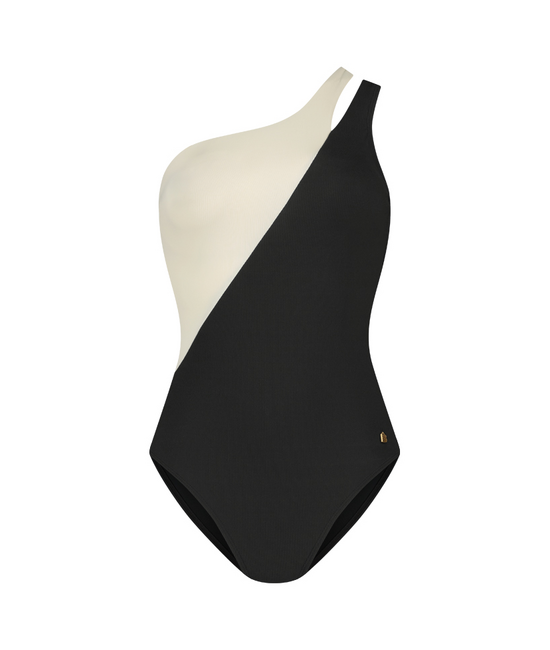 - One- shoulder badpak - Ingebouwd topje van mesh - Zonder vulling - Met beugel - Verstelbare schouderbandjes - Sluiting is nikkelvrij