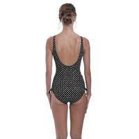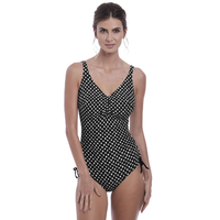 Chique en monochroom, laat uw zwembad er iconisch uitzien met Santa Monica. Gemaakt van een Spaanse piqué gestructureerde stof met witte vlekdetails op een zwarte ondergrond, kijk uit voor onze nieuwe bandeau-vorm voor AW19 met een ontwerp met een verlaagd middenvoor, evenals een verscheidenheid aan extra stijlen en dekkingsniveaus.