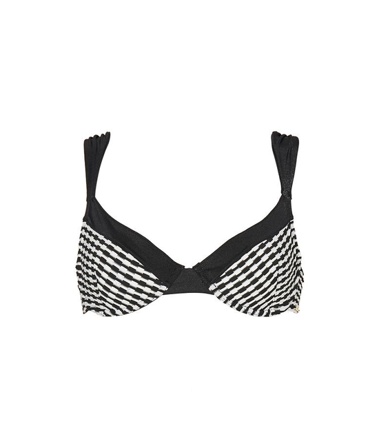 Deze bikinitop heeft een zwart en wit combinatie. Dit is een niet-voorgevormde bikinitop. De Eva bikinitop heeft dikkere bandjes voor meer ondersteuning.