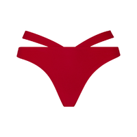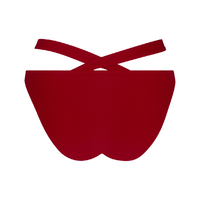 - Lage tailleslip - Elegant en lichtjes aansluitend - Uitgesneden voorraan en omhullend op de billen - Bandjes vooraan taille die kruisen in de rug