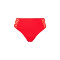 - Bikinislip aansluitend achteraan - Breed langs de zijkanten - Met transparante zijkanten - Hoge slip - Retro look