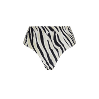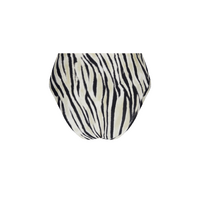 - Hoge tailleslip - Breed langs de zijkanten - Omkeerbare bikini slip, één kant in bedrukte maille de andere kant in uni maille. - Hoog te dragen in de taille of met omgeslagen tailleband.