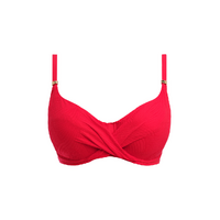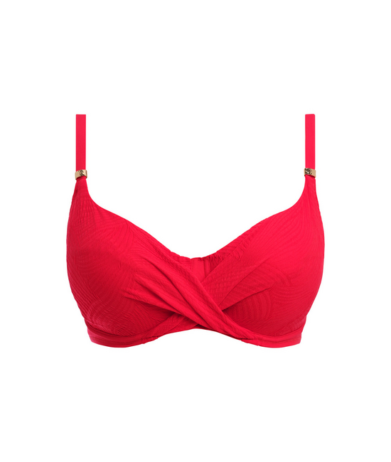 - Volle cup bikini top - Bedekt bijna de volledige borst - Met beugel - Zonder vulling - Verstelbare schouderbandjes - Gekruiste stof voor de borst