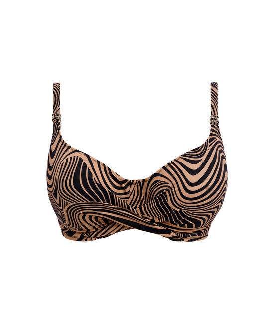 - Volle cup bikini top - Bedekt bijna de volledige borst - Met beugel - Zonder vulling - Verstelbare schouderbandjes - Gekruiste stof voor de borst