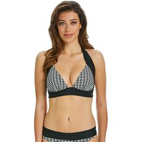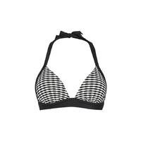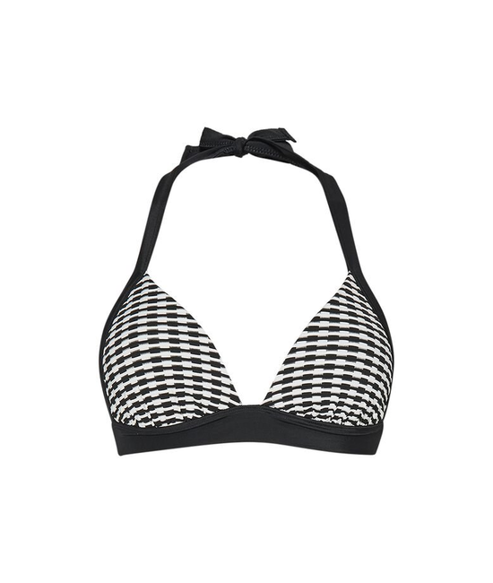 De Eva Fixed Halter bikinitop komt in zwart-wit. Deze top heeft bandjes die langs de nek gaan. De bandjes kun je zelf knopen. Rondom zit een dikkere band wat erg comfortabel zit.