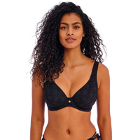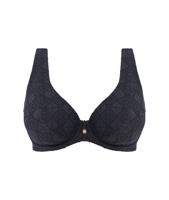 - Plunge bikini top - Met beugel - Zonder vulling - Verstelbare schouderbandjes - Overtrokken met kant