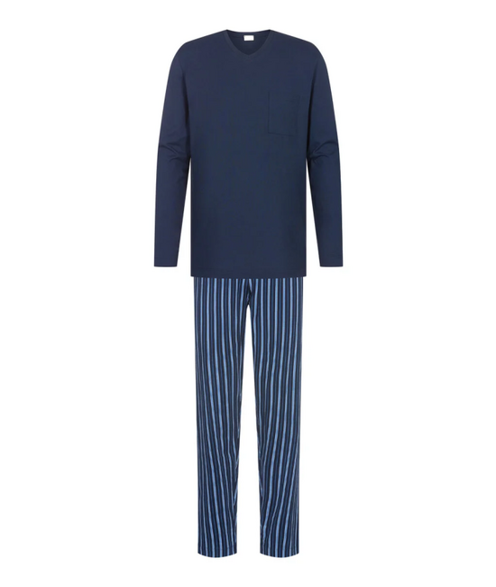 - 2-delige lange pyjama - Shirt met lange mouwen - Borstzak - V-hals - Comfortabele tailleband - Aangename single jersey kwaliteit