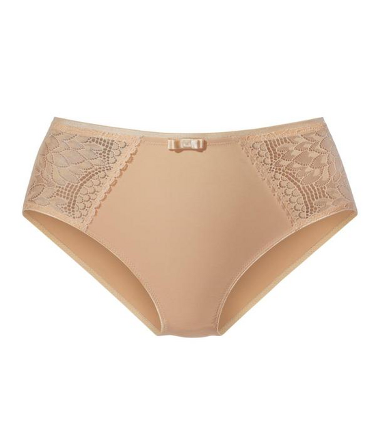 - Hoge slip - Niet transparant voor- en achteraan - Katoenen kruisje - Afgewerkt met transparante kant - Afgeboord met elastiek