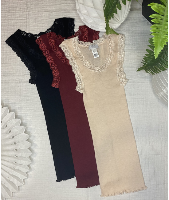 - Thermisch onderhemdje zonder mouw - Angorawol en zijde - Afgewerkt met kantpatroon