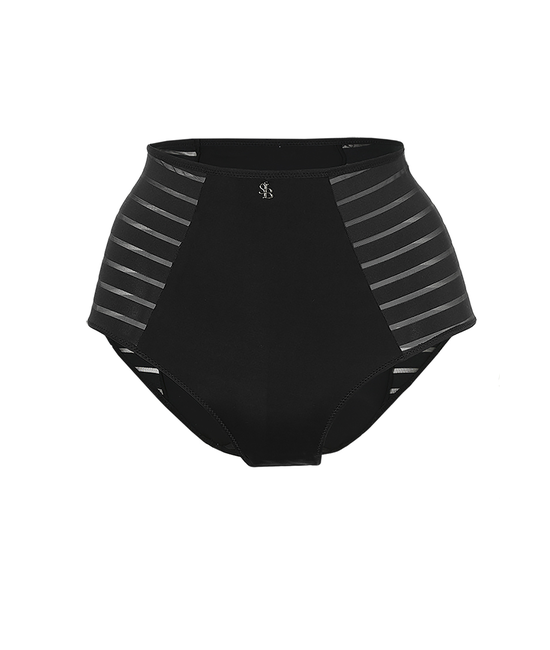 Hoge slip uit de nieuwe basiscollectie van Sapph. De slip is opzij doorzichtig gestreept. Vooraan is de slip blikdicht.