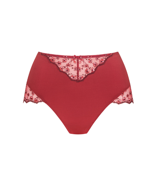 - Hoge slip - Kanten detail op de tailleband en benen - Platte, elastische zoom op been- en tailleband - Dichte stof op de billen