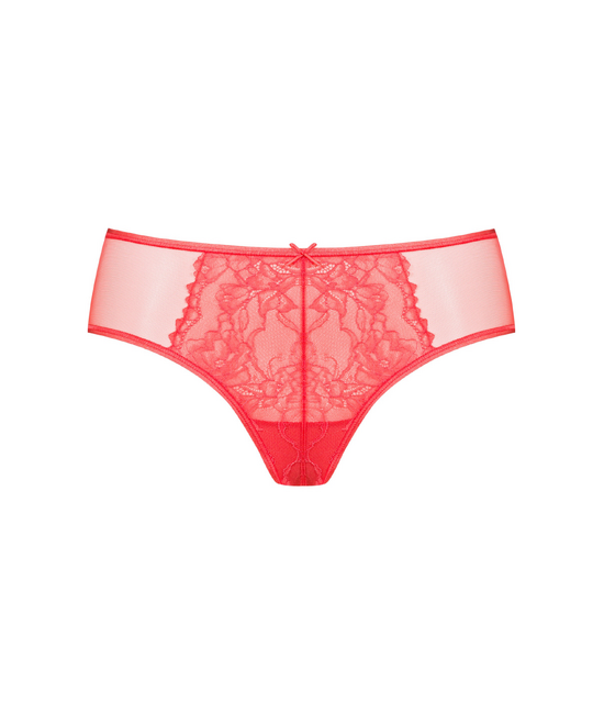 - Hipster - Voor- en achterzijde transparant - Omzoomd in de taille - Omzoomd aan de benen - Gevoerd met katoenen kruisje