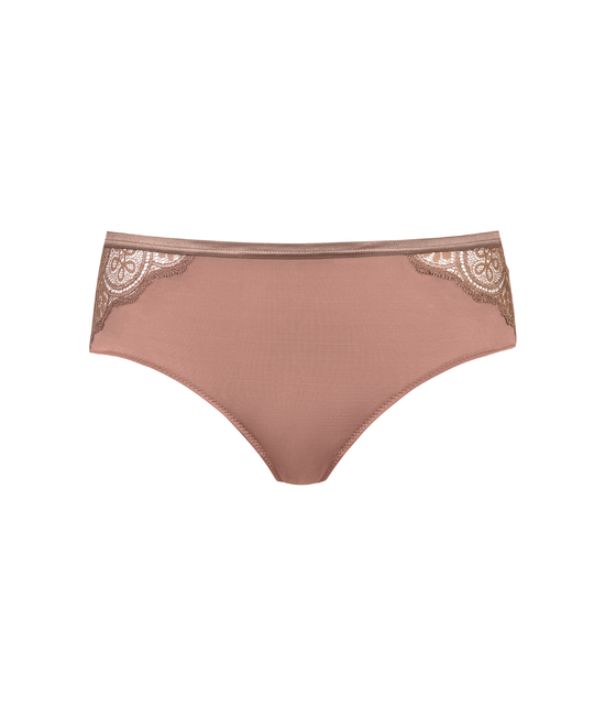 - Short normale hoogte - Kanten versiering op de zijden - Voor- en achteraan gesloten - Omzoomd - Zachte Taillenband - Gevoerd met katoenen kruisje