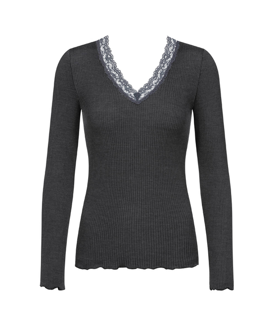- Thermisch shirt met platte, zachte kant - Lange mouw - V- hals - Geribbelde structuur - Zeer elastisch - 85% wol, 15% zijde