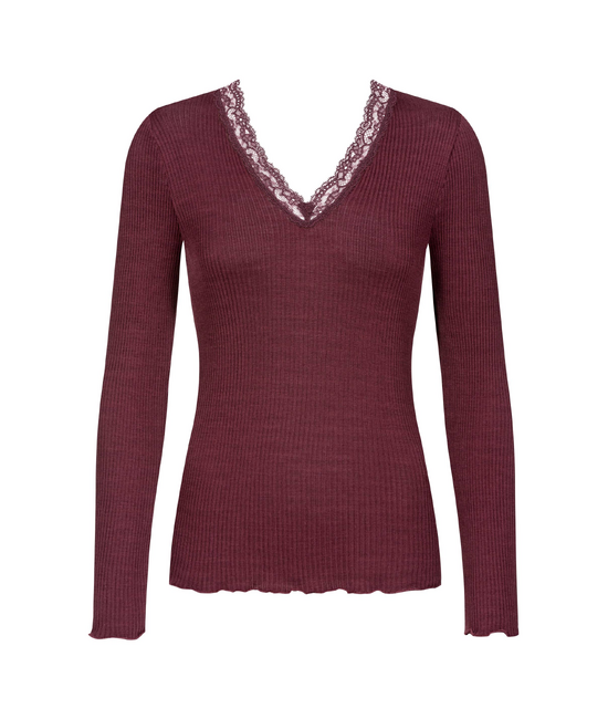 - Thermisch shirt met platte, zachte kant - Lange mouw - V- hals - Geribbelde structuur - Zeer elastisch - 85% wol, 15% zijde