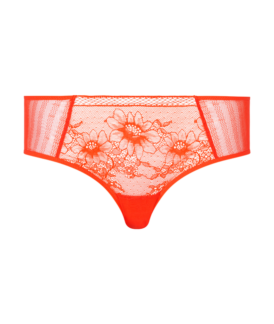 - Short normale hoogte - Transparant voor- en achteraan - Afgeboord met elastiek - Fantasiebandje achteraan - Gevoerd met katoenen kruisje
