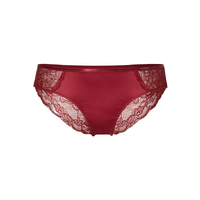 Comfortabel en sexy. Hij valt normaal en is aan de voorkant gemaakt van een zachte, glanzende stof. Op de achterkant loopt de doorzichtige kant niet helemaal door tot aan de dunne heupband met subtiel ringetje, maar laat een beetje huid zien.
