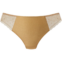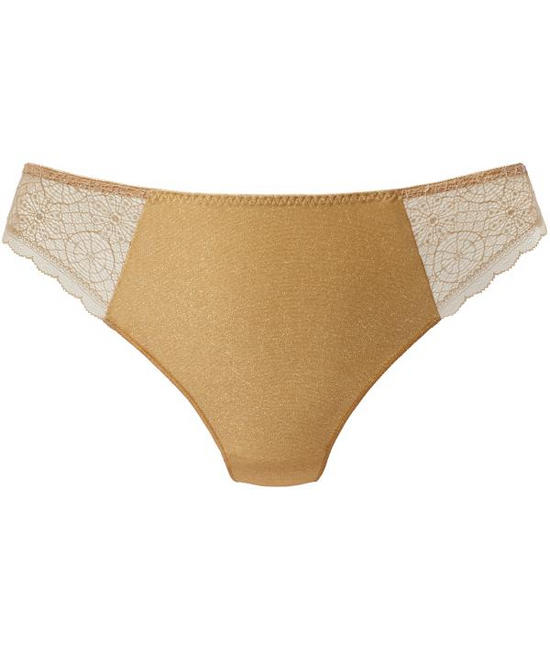 - Kleur Goud - String normale hoogte - Katoenen kruisje - Transparant op de zij- en achterkant - omgezoomd, niet afgeboord (minder zichtbaar)