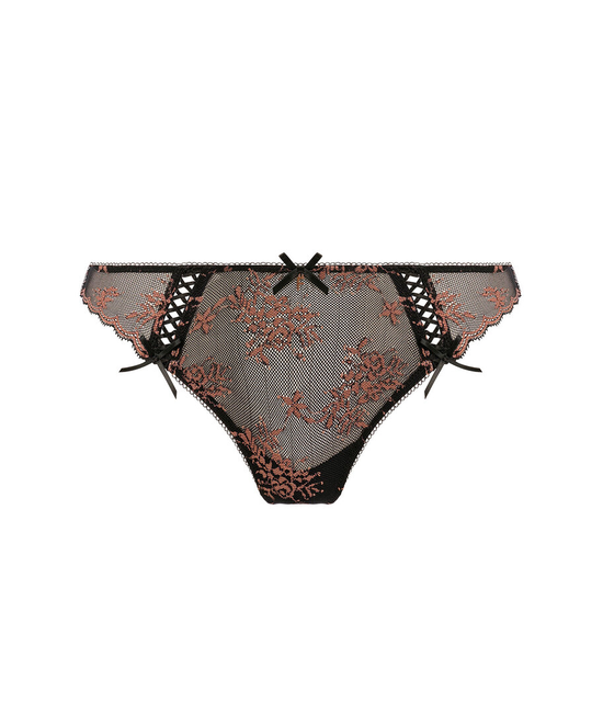 - String/Brazilian - Normale hoogte - Transparant voor-en achteraan - Omzoomde boord op de billen - Gevoerd met katoenen kruisje