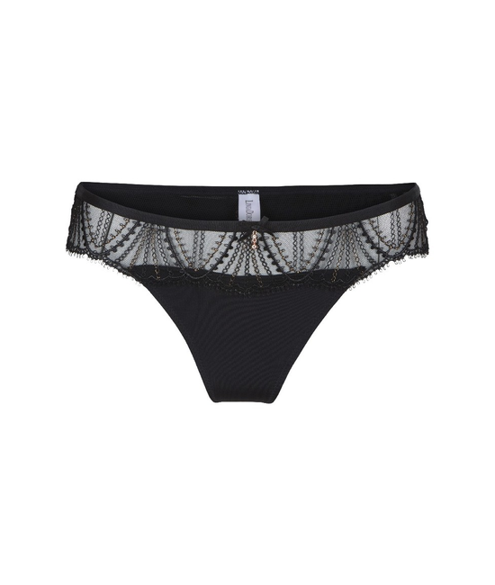 - String in normal hoogte - Afgewerkt met kant en glitterdraad - Voor- en achteraan semi-transparant