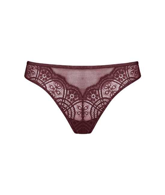 - Diepe, halfhoge pasvorm - Platte tailleband, niet knellend - Kant ingezet aan voor- en achterzijde - Katoenen kruisje