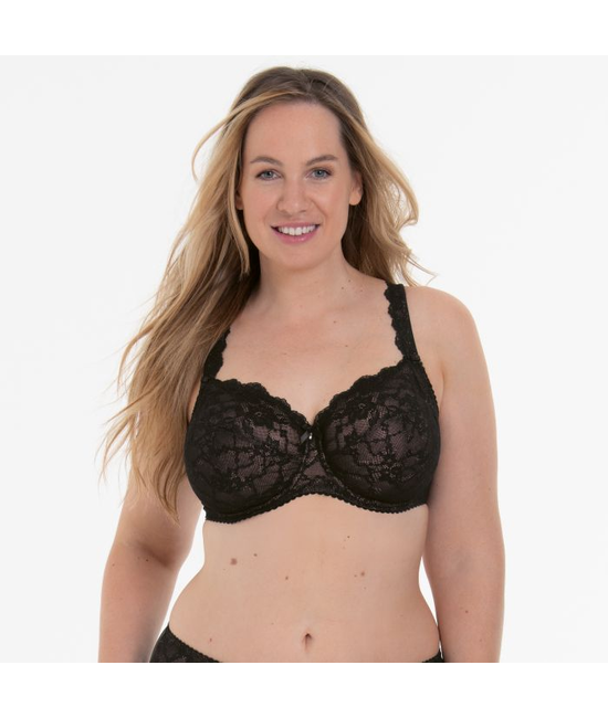 - Full Cup BH - Met beugel - Zonder vulling - Elastische, semi-transparante kant - Gevoerd met elastische tule - Verstelbare schouderbandjes - Haak- en oogsluiting, 3-voudig verstelbaar