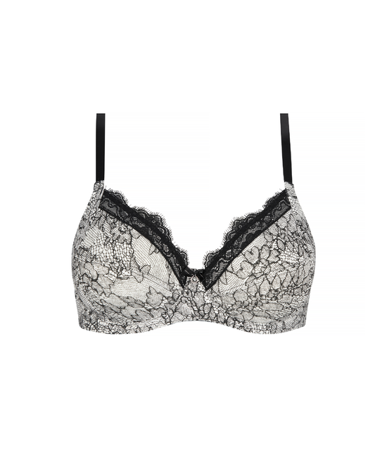 3-delige beugelbeha Met beugel Zonder vulling Extra steun door zijpand In bedrukte maille zeer zacht. Kant aan decolleté Verstelbare schouderbandjes Haak- en oogsluiting, drievoudig verstelbaar