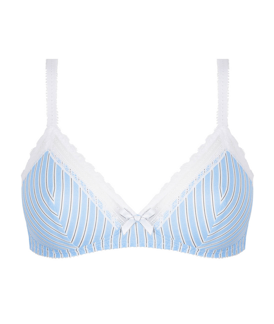 - Soft Cup - Lichtblauw/ wit gestreept - Zonder beugel - Zonder vulling - Verstelbare schouderbandjes - Haak- en oogsluiting, 3-voudig verstelbaar