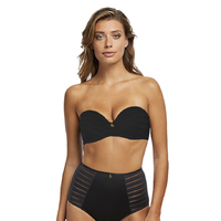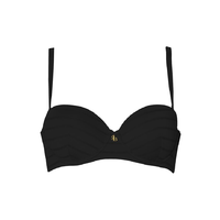 De strapless balconette bh is een uniek item. Deze zwart gestreepte bh kun je met en zonder bandjes dragen. Er zit geen rubber of silicone in deze bh om irritatie van de huid te vermijden. De beugel van de bh is aangepast zodat de bh bij zo veel mogelijk vrouwen mooi en comfortabel zit.