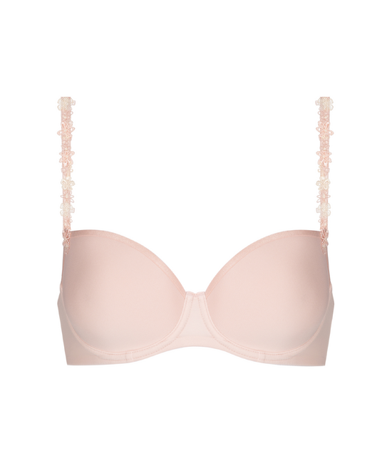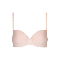 - Voorgevormd in spacer stof - Met beugel - Bedekt 1/2de de cup - Verstelbare schouderbandjes - Versiering op de bandjes - Bandjes kunnen in kruis of rond de hals gedragen worden - Haak-en oogsluiting, 3-voudig verstelbaar