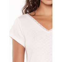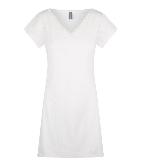 - Slaapjurk - V-hals met kant - Korte mouw - 95% katoen, 5% elastaan - Lanngte: boven de knie