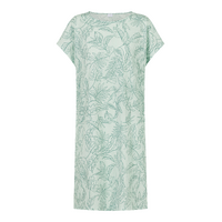 - Casual snit - Korte, schuine mouw - Bladprint in mint - 100% katoen - Knie lengte